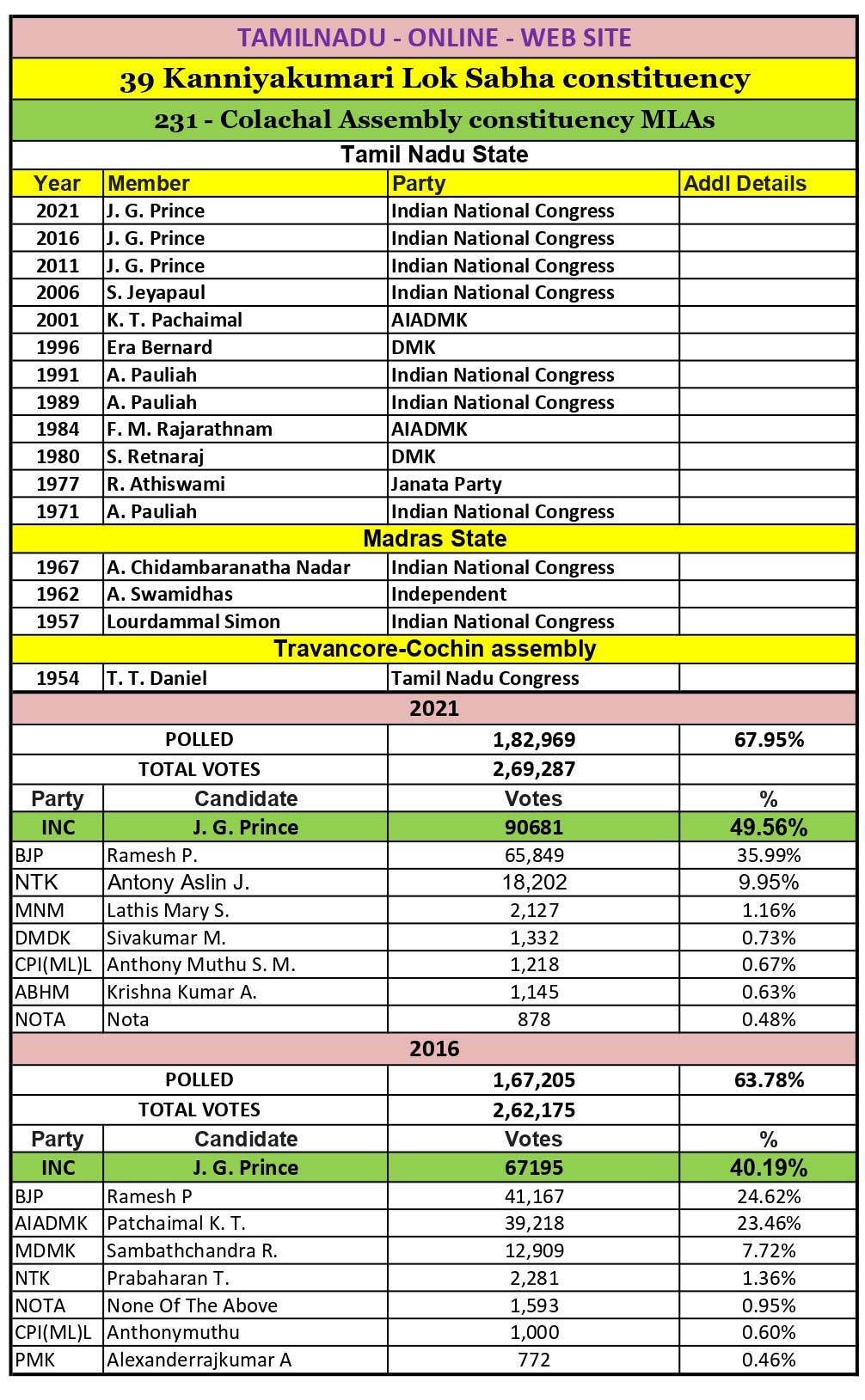 | MLA Const. No | MLA Const. Name | District | Weblink | Under MP Const. Name | MP Const. # |